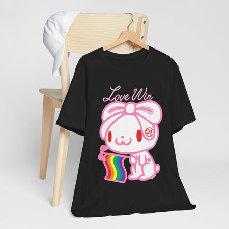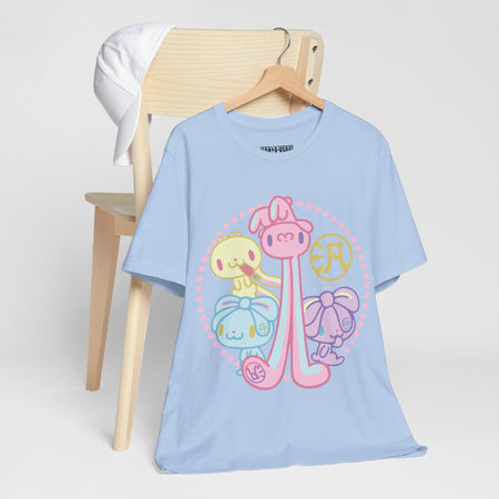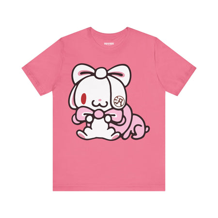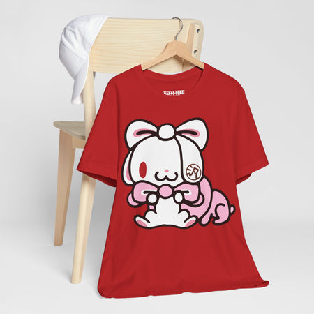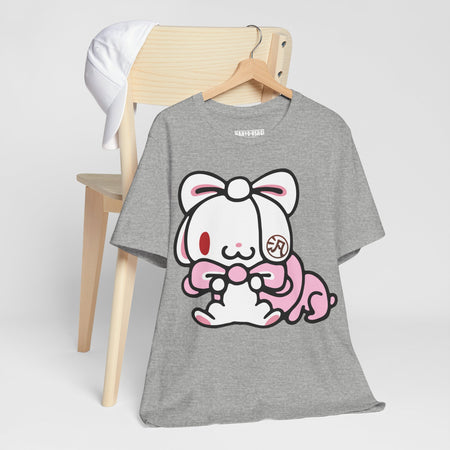 Meet All Purpose Bunny, a rabbit who, due to cross-breeding, has extremely long ears which it uses to do various things. All-Purpose Bunny, similar to it's artist's most famous work, Gloomy Bear, has a dark side that is hidden by it's cute looks. APB's favorite food is carrot berries—a genetically engineered fruit combining the nutritional value of carrots and the delicious taste of strawberries. All-Purpose Bunny always has the kanji character 汎 imprinted on its left ear.