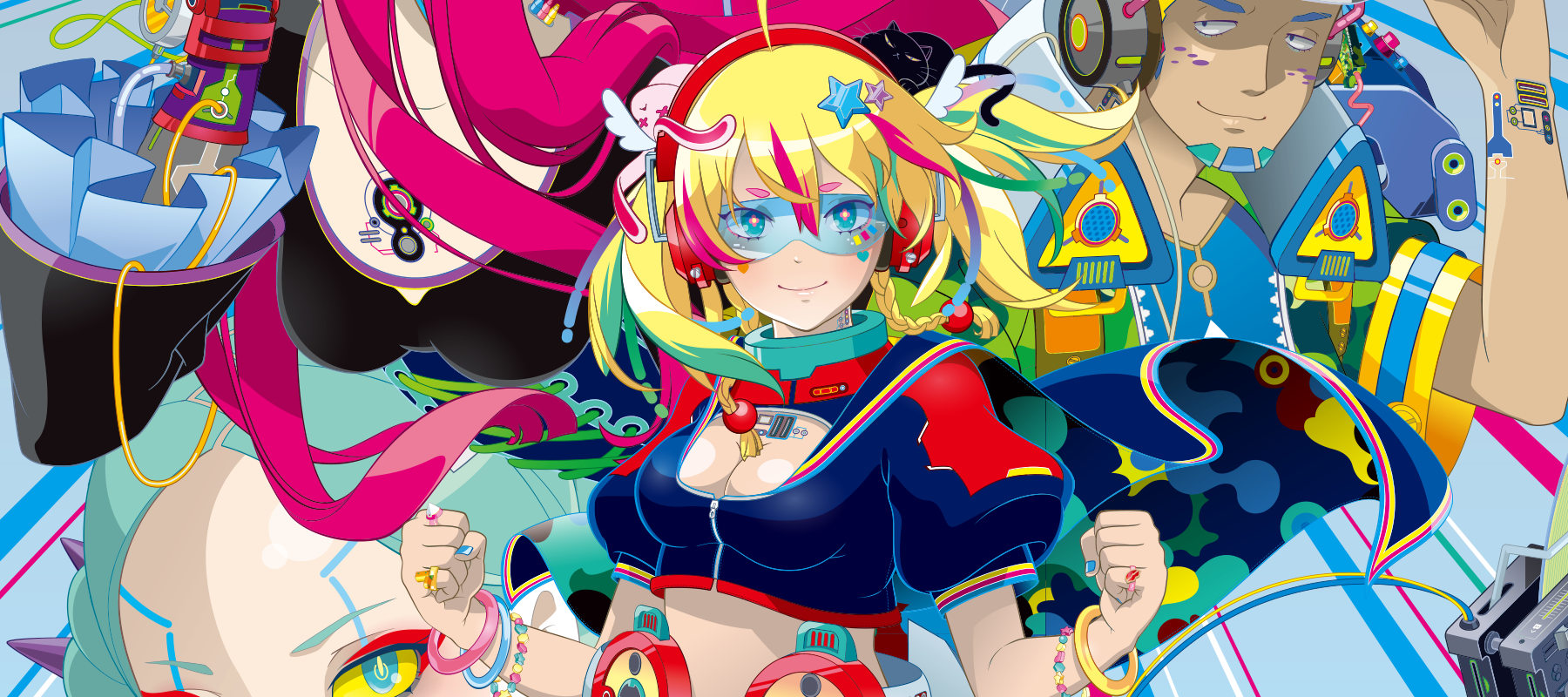 Hypersonic music club is a vibrant and futuristic anime and manga series with art by Hiroyuki Mitsume Takahashi. Set in a surreal, cybernetic world, the story blends elements of science fiction, fantasy, and music, creating a visually stunning and captivating experience. With Mitsume's distinctive art style, characterized by bold colors and intricate designs, Popiko's Hypersonic music club Collection explores themes of creativity, rebellion, and the transformative power of sound.